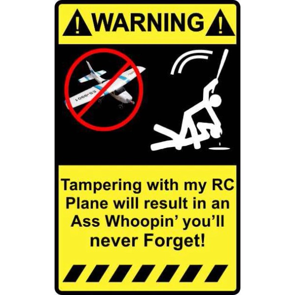 CapecodBuyandSell 4" Warning Tampering with my Rc Plane Decal Sticker GWS Slow Stick Multiplex