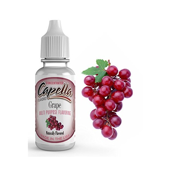 Grape flavoring Flavor any type of food or beverage. We leave the sweetening to you! Capella Flavor Drops are water soluble, highly concentrated, multi- purpose flavoring. Zero fats, calories or sweeteners. No preservatives, stabilizers or potassium sorbate. Corn and peanut free! Gluten-free and vegan friendly. Our drops contain no animal products of any kind. Guilt free. Create sugar free low-calorie drink and food alternatives. Perfect for diabetics.