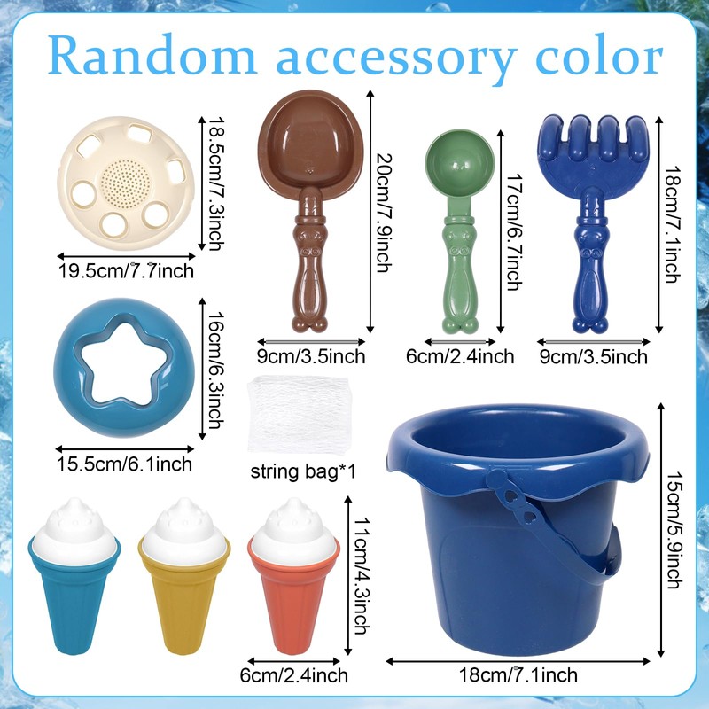 - Sand toy set: you will receive 1 sand bucket for children, 2 lids, 3 sand toys ice, 1 rake and 2 sand shovel children, the sand toy comes with a mesh bag for storing all sand toys. You can easily take the travel beach toy with you on your trip