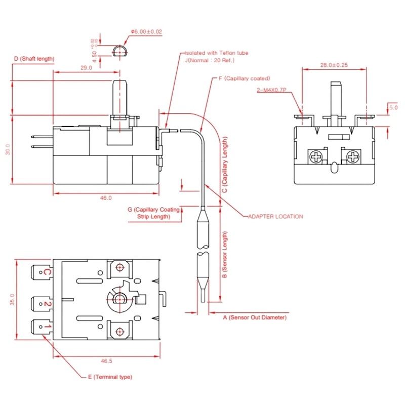 - Stable operation and no noice by snap action. Non-rust stainless (SUS304) steel capillary tubes and bulb