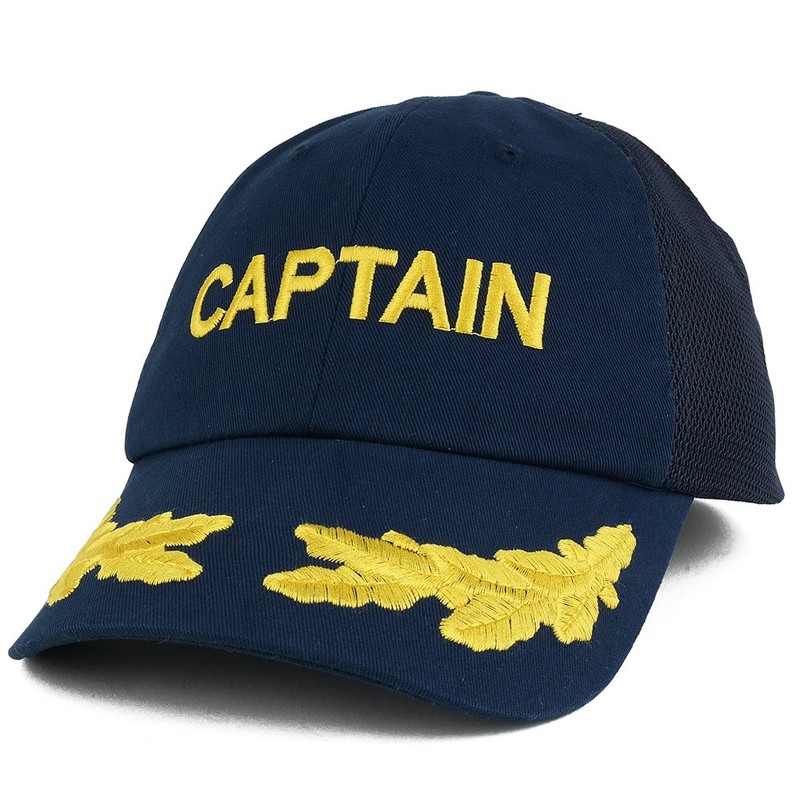 Capitán y hojas de roble bordado algodón suave de malla ajustable Cap, Marino