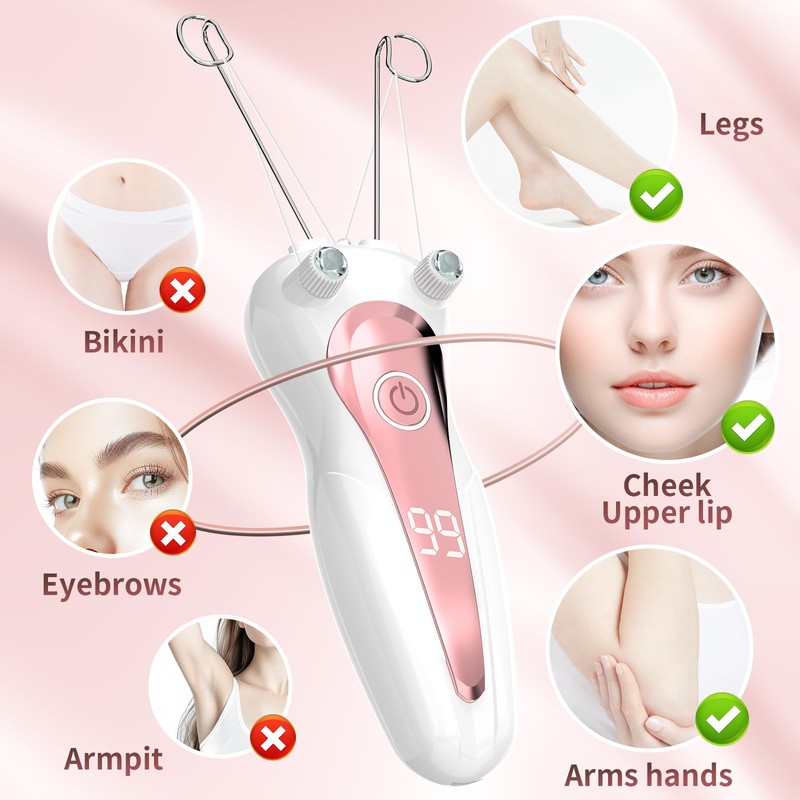 CAPMESSO Facial Hair Remover Fast Charging Threading Hair Removal Ladies Facial Hair Remover with Digital Display Women's Arm and Leg Epilator - Cotton Thread and Pearl Powder (Pink)
