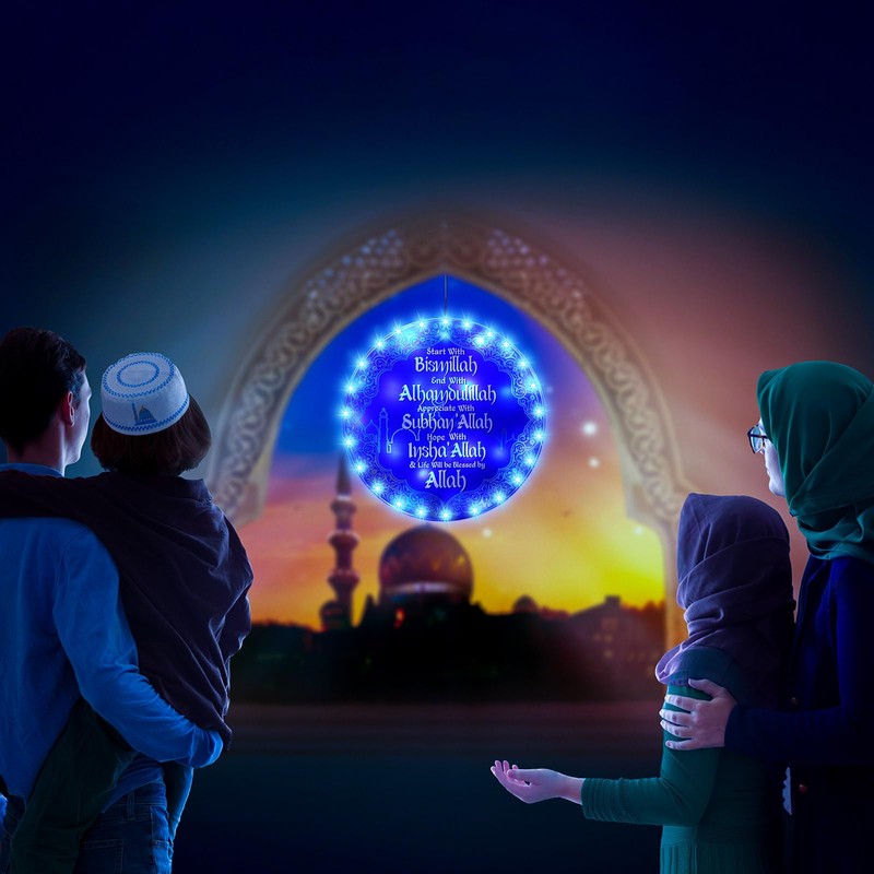 - Eid Mubarak Lights: 1 piece of Islamic Allah window light, which is about 11 inch in size, with a sticky hook for Ramadan door sign, making your Ramadan decorations shine out in the dark, good for Eid al-Fitr decorations, ramadan decorations for home, eid ramadan lights