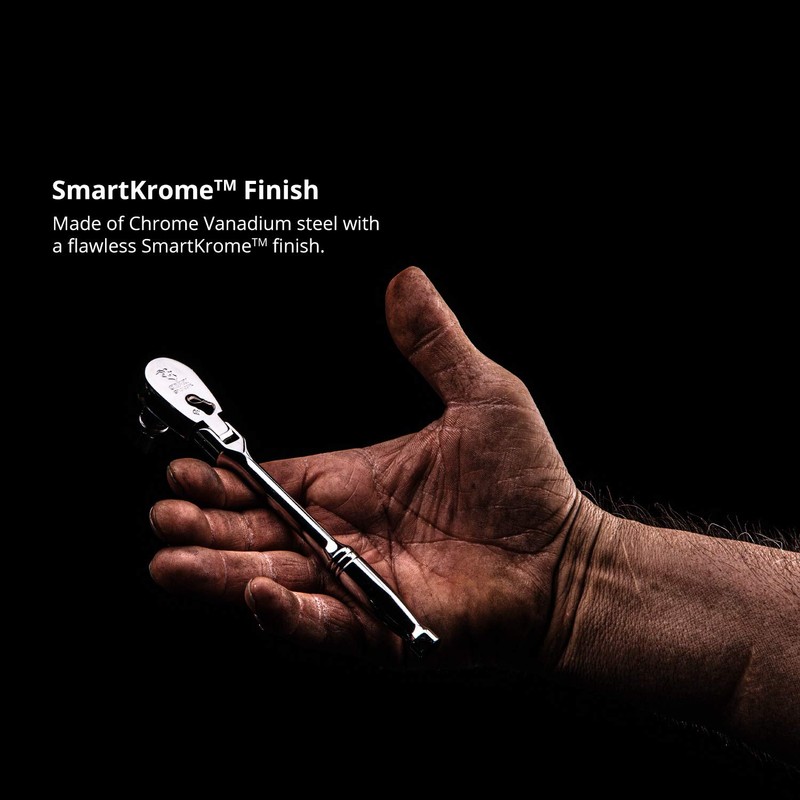 - 180-degree flex-head makes it easy to navigate odd angles and tight corners. Low profile ratchet head lets you work in tight spots with low clearance. Anti-dust design seals out dusts and debris, protects the gear, and maintains internal lubrication for sustained high performance over time