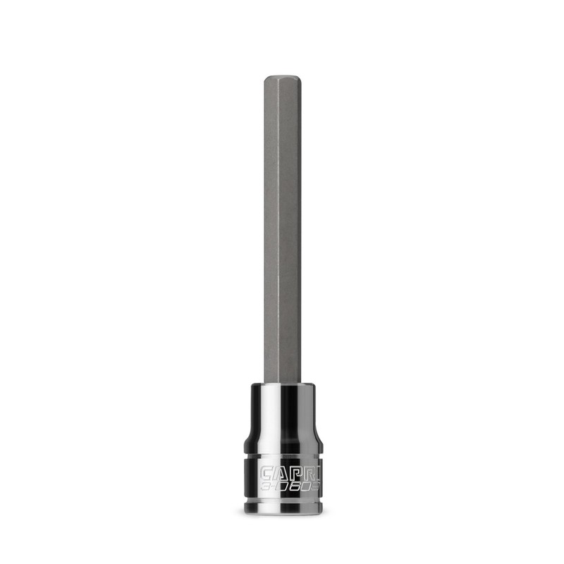 Made for the most demanding professionals, each of our bit sockets is made from custom forged premium steel that underwent proprietary heat treatment and precisely machined to perform in toughest situations. Premium S2 steel forged bits are exceptionally strong and durable. These S2 steel bits withstand high torque and do not twist, protecting both the bit and the fastener. Chamfered end to ensure a smooth fit onto fasteners. Premium Chrome Vanadium steel sockets plated with our SmartKrome protective plating are durable and corrosion resistant. Single 3/8 in. drive, long 8 mm hex bit socket (2-3/4 in. long bit). The Capri Tools bit sockets are made for the most demanding professionals. Each of our bit sockets is made from custom forged steel that underwent a proprietary heat treatment process and precisely machined to perform in toughest situations. Premium S2 steel forged bits are exceptionally strong and durable. They withstand high torque and do not twist, protecting both the bit and the fastener. All bits feature chamfered end to ensure a smooth fit onto fasteners. The sockets are constructed with premium Chrome Vanadium steel and plated with our own SmartKrome protective plating. They are durable and resist corrosion. Meets and exceeds ASME B107.110 standards. Single 3/8 in. drive, long 8 mm hex bit socket (2-3/4 in. long bit).