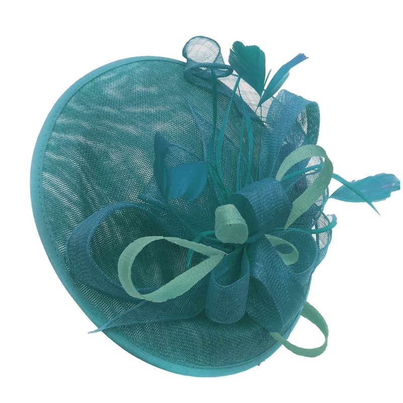 - Teal Turquoise and Light Turquoise Aqua Sinamay Big Disc Saucer Fascinator Hat for Women Weddings Headband
