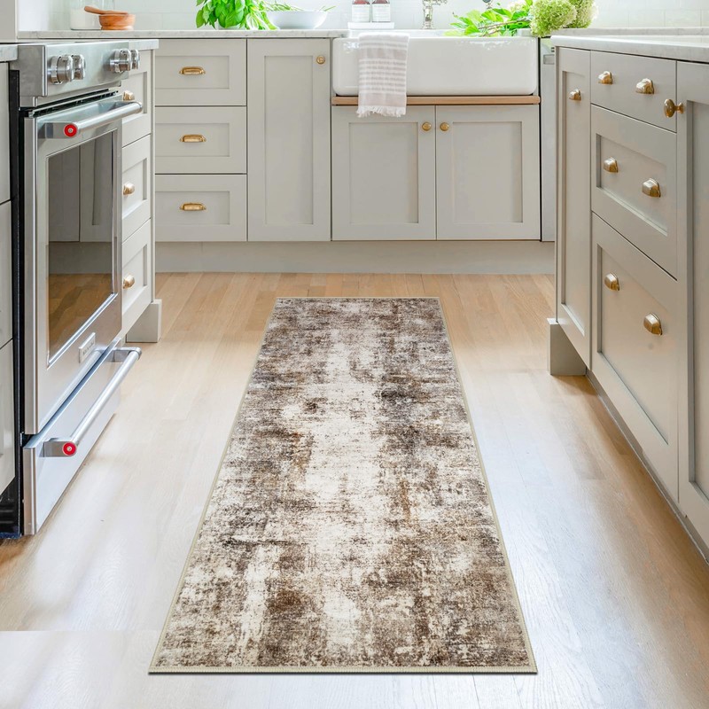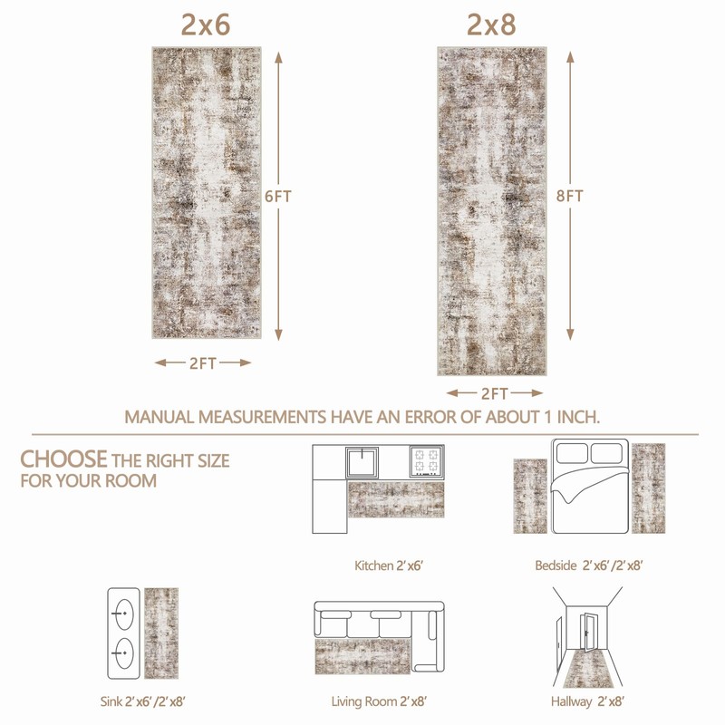Capslpad 2x6 Brown Abstract Hallway Runner, Ultra Soft Fabric Washable Runner Rug, Non-Slip Rubber Backing, Stain Resistant Low Pile Runners for Hallways, Kitchen, Entryway, Bedroom, Laundry