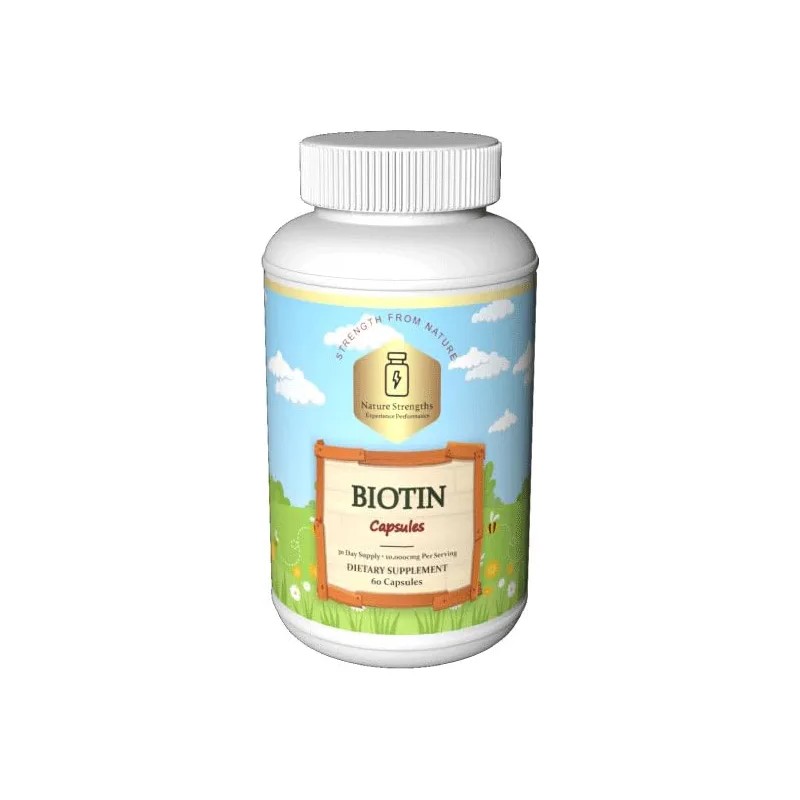 • Beneficios: La biotina, una vitamina esencial del grupo B, es fundamental para el metabolismo y para mantener los tejidos sanos. Ayuda a fortalecer el cabello, previniendo su caída y mejorando su grosor. También contribuye a fortalecer las uñas, reduciendo la fragilidad y las roturas. Además, apoya la salud de la piel, dándole un aspecto más saludable.