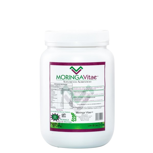 Capsulas De Moringa Pura Orgánicas | 500 Caps | Moringa Vitae |