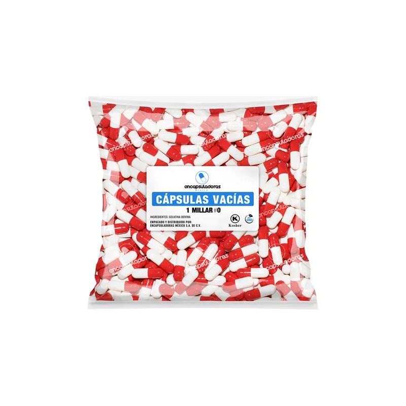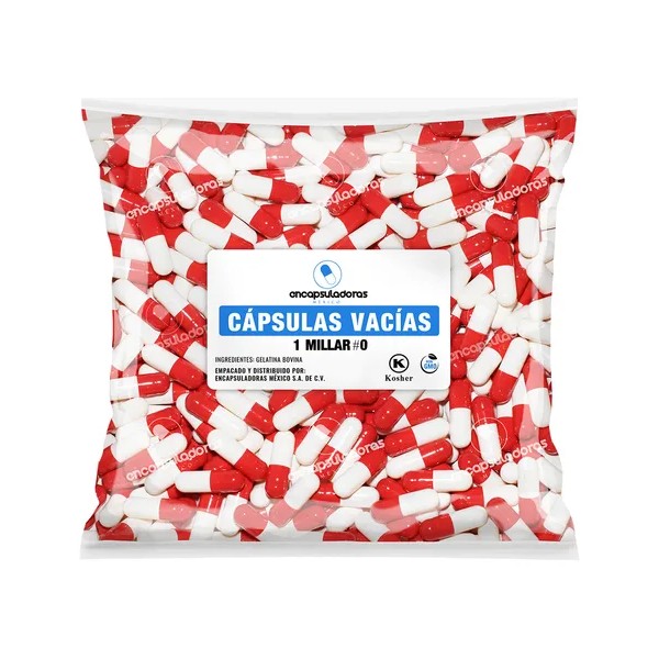 Estas cápsulas cuentan con un diseño bicolor (blanco y rojo) que facilita su identificación, ideal para distinguir fórmulas específicas. Están elaboradas con gelatina 100% de origen bovino, lo que garantiza un producto limpio, seguro y libre de componentes porcinos, apto para consumidores con restricciones alimentarias o religiosas.