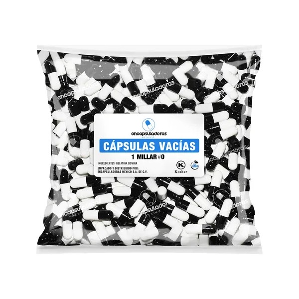 Las cápsulas vacías NEGRO/BLANCO tamaño #0 están elaboradas con gelatina de origen 100% bovino, libre de compuestos de origen porcino. Son ideales para consumidores exigentes que valoran la transparencia en los ingredientes y buscan fórmulas limpias, seguras y certificadas. Esta presentación de doble color también facilita la identificación de diferentes formulaciones en el proceso de encapsulado.