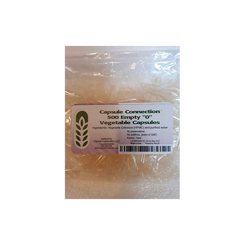 Capsule Connection 500 Bulk Wholesale Empty Vegetable Capsules,"0" Size Vegan & Vegetarian resealable Bag