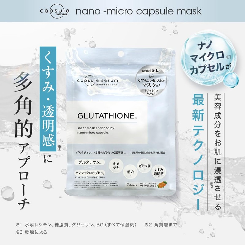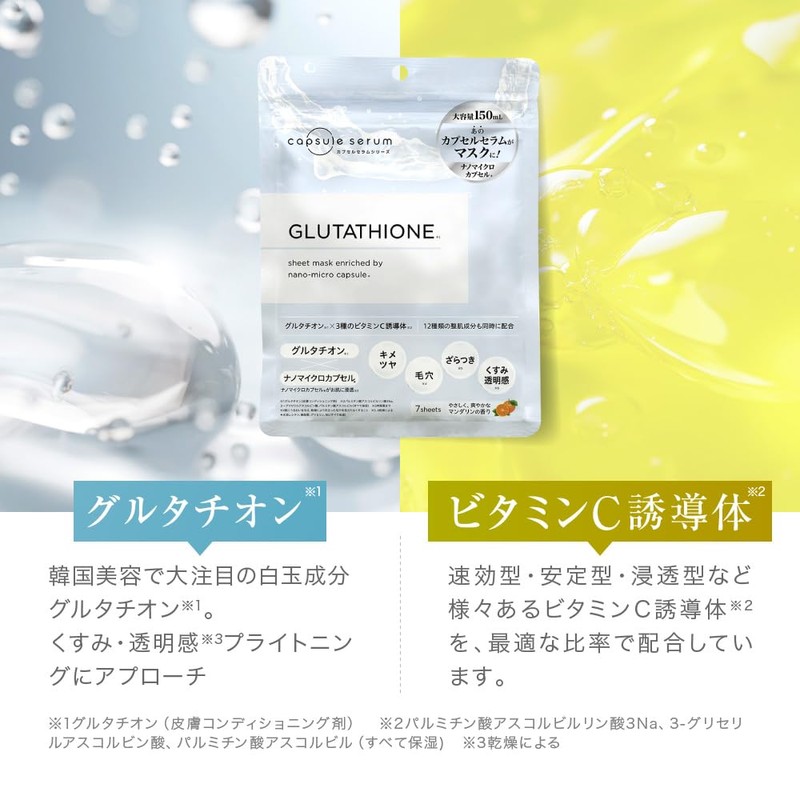 CAPSULE SERUM Face Mask, Glutathione, 7-Pack, Dullness, Transparent, Pores, Vitamin C Derivative, Niacinamide, CICA Ceramide