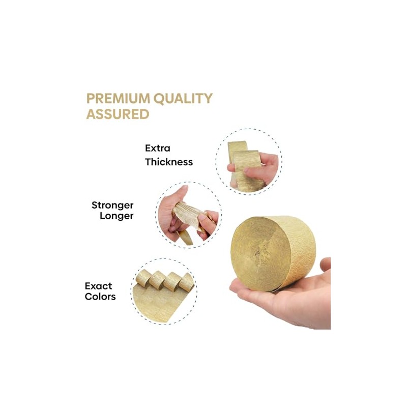 - Superior Quality Material: Experience the difference with our premium crepe paper that's economical and more durable than the standard. Expertly crafted with a unique creping process, our crepe paper rolls resist tearing and fading, ensuring your decorations look stunning throughout your event.