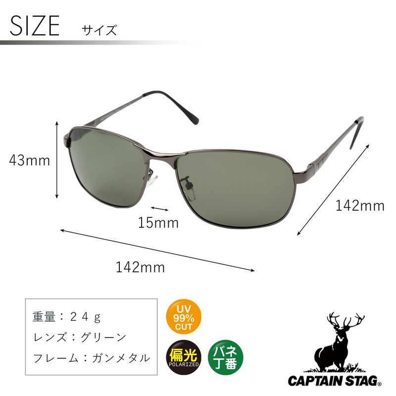 Captain Stag CSP-003-3-EH-72 Polarized Men's Sunglasses, Sunglasses Case, Stainless Steel, Green