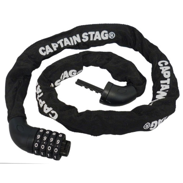 Captain Stag Y-4346 Bicycle Key Lock 4 Dial Chain Lock 4 Digit Cloth Cover Black