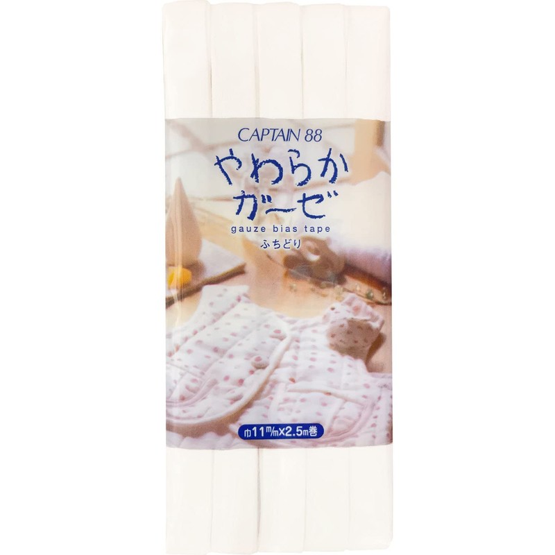 キャプテン CAPTAIN88 やわらか ガーゼ ふちどり バイアステープ 11mm幅×2.5m巻 #1 オフホワイトCP122
