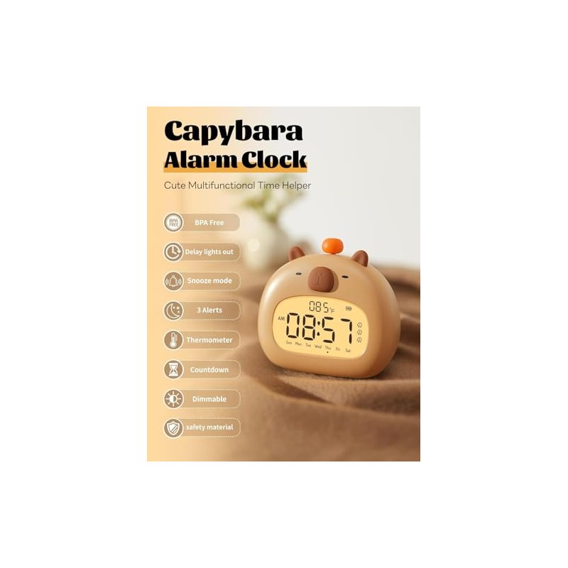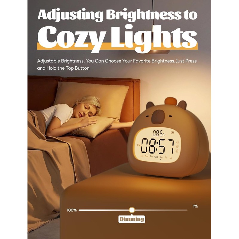 - đăDream Capybara Sleep Trainer & Night LightăThe Cute Capybara Alarm Clock is a Good Trainer to Help Children Sleep Alone at Night. with Cute Capybara Lamp With Soft Warm Lights, You don't Need to Worry About Your Kid's Fear, They Will Definitely Have a Nice DreamïŒ