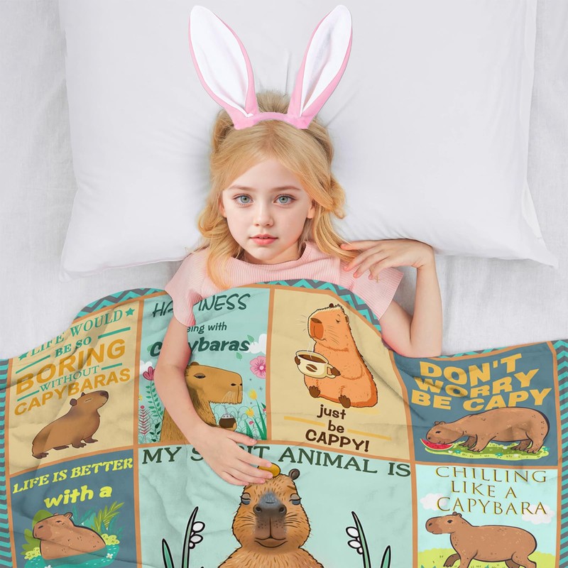 - 【GREAT BLANKET GIFTS】The capybara throw blanket are very vivid with capybara, which is an amazing and cute gift for your boys. Your kids will love it! The capybara blanket is perfect as a gift for Birthday, Children's Day, Christmas, Thanksgiving Day, Halloween and any holiday, which will make your girls, boys, grandson, granddaughter, nephew happy.