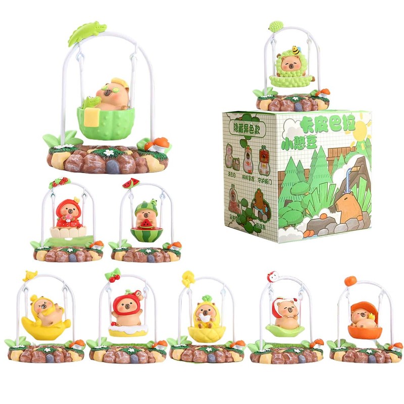 - Capybara Series Figures: Those cute capybara theme blind box are collectible that come in a sealed box, with the content unknown to buyers until they open it. This collection contains 8 regular figures and 1 hidden edition. When you buy the whole set, you will get 6 different ones with no repetitions.