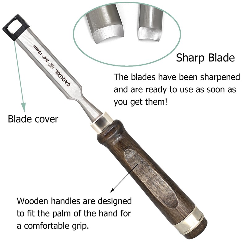 CAQUXIL 11" Wood Chisel Sets for Woodworking, Semi-Circular Edge Blade