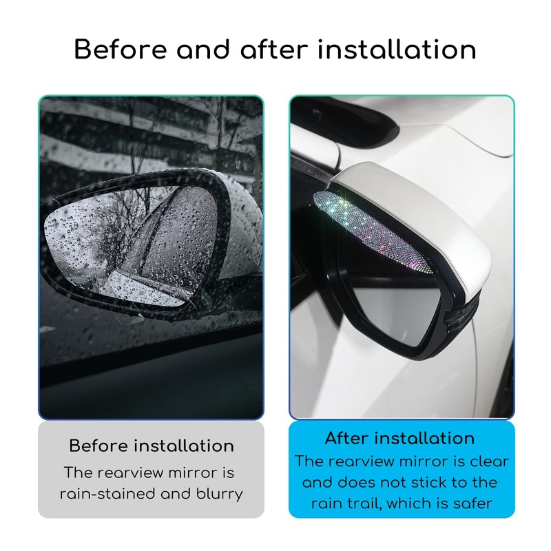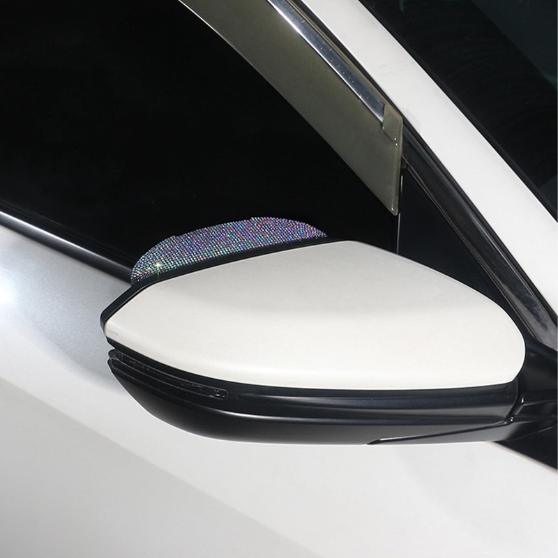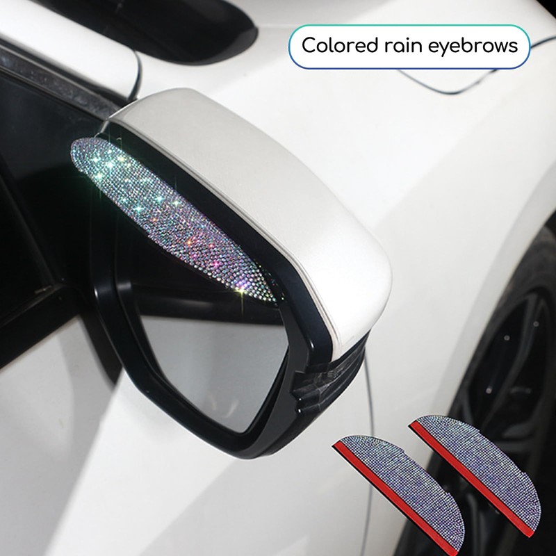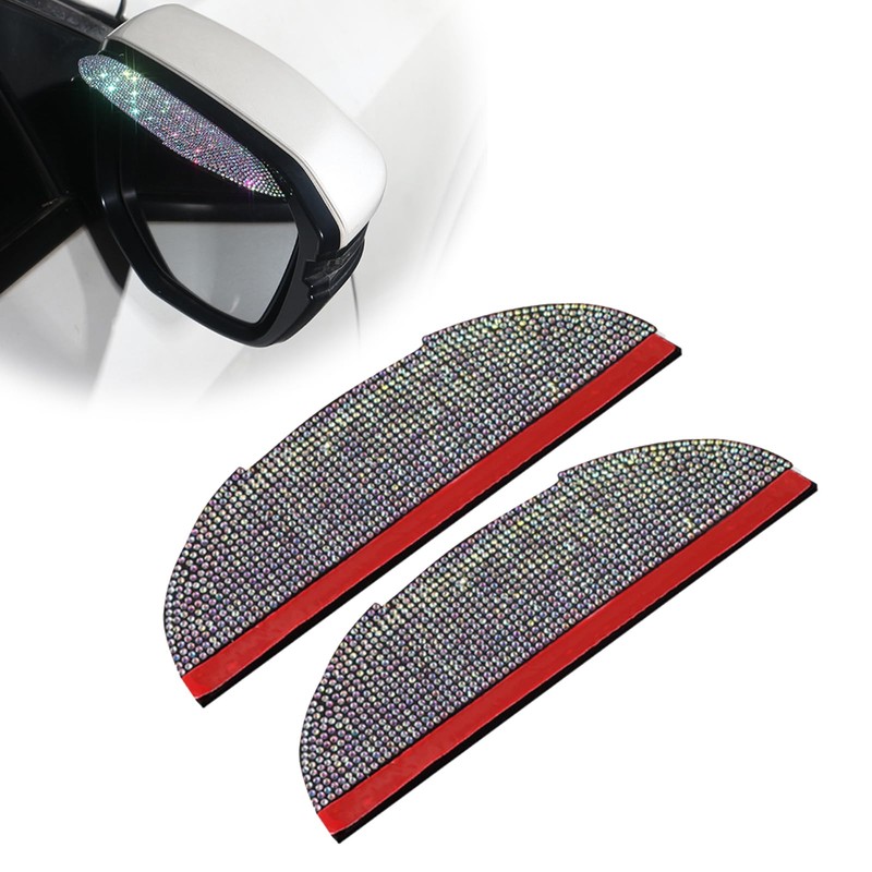 Car 2-PC Rear Mirror Rainproof Diamond Studded Rain Eyebrow Anti Reflective Car Universal Rearview Mirror Rainproof Plate (Multicolour)