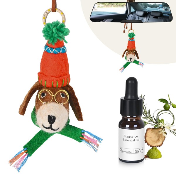 Car Air Freshener with Felt Plush Hatted Puppy Ornament, Citrus Scent, Essential Oil Diffuser, 90+ Days Long Lasting Aroma, Natural Plant Essence