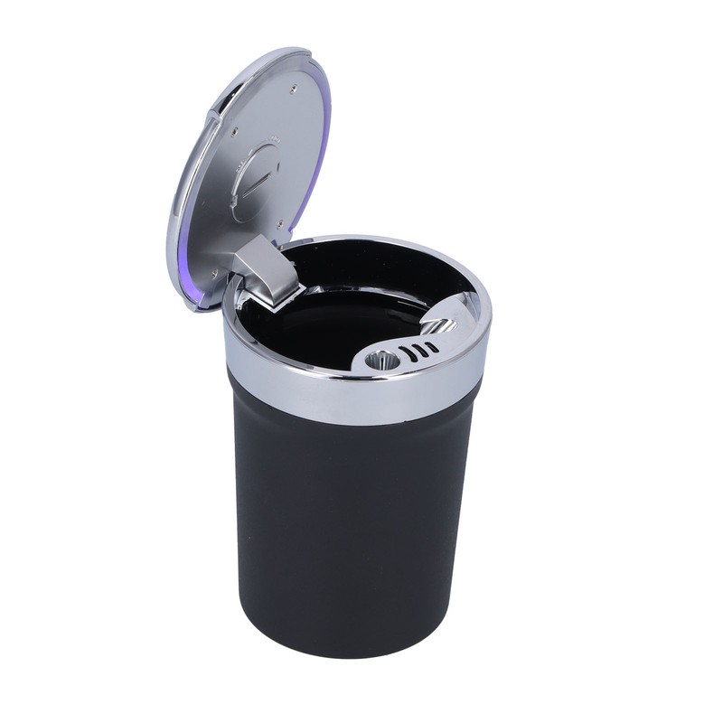 Car Ashtray ABS Portable Cylinder Shape Ash Tray with Blue LED Light for Travel Office