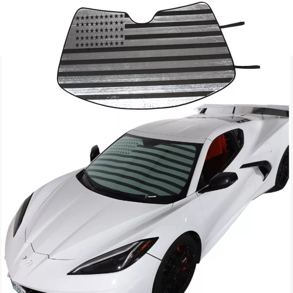 car-attention Windshield Sun Shade Visor US Flag UV Block Shield Cover For Corvette C8 2020-24