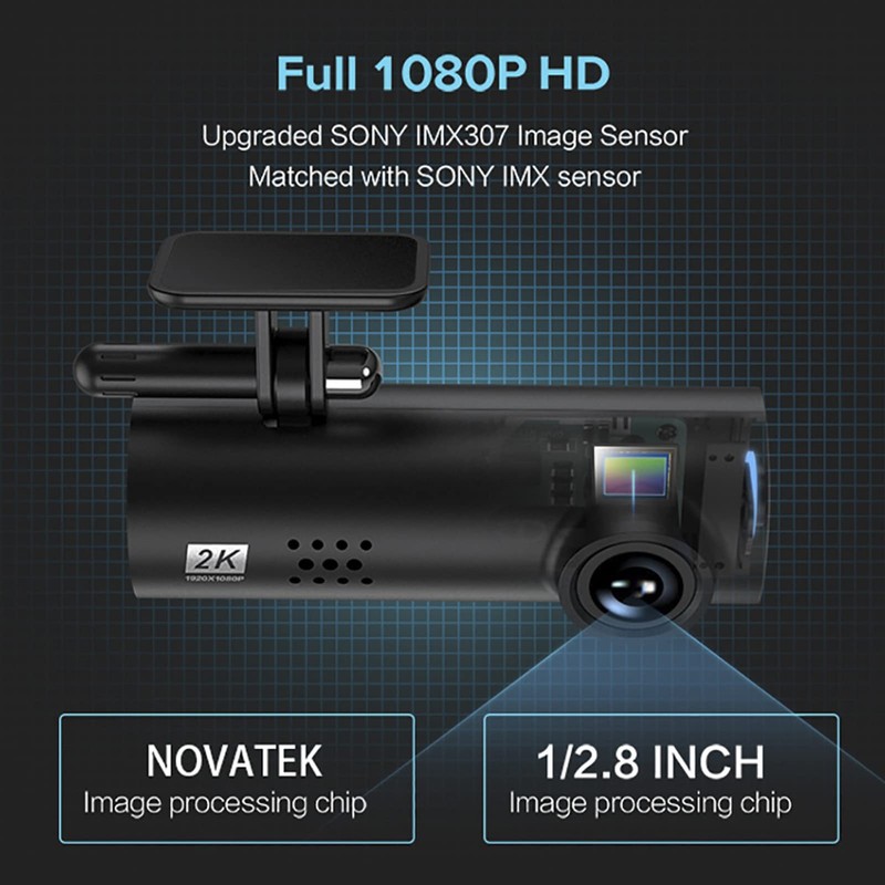 - Visión nocturna: la cámara grabadora de salpicadero puede iluminar escenas con poca luz y proporcionar imágenes claras incluso en condiciones de poca luz, con lente gran angular de 170°.