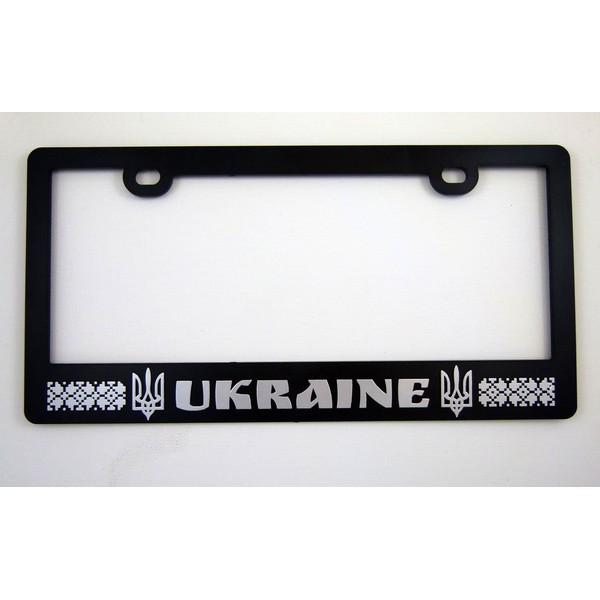 Car Chrome Decals Ukraine Ukrainian Black ABS License Plate Frame with Silver Raised Copy Tryzub