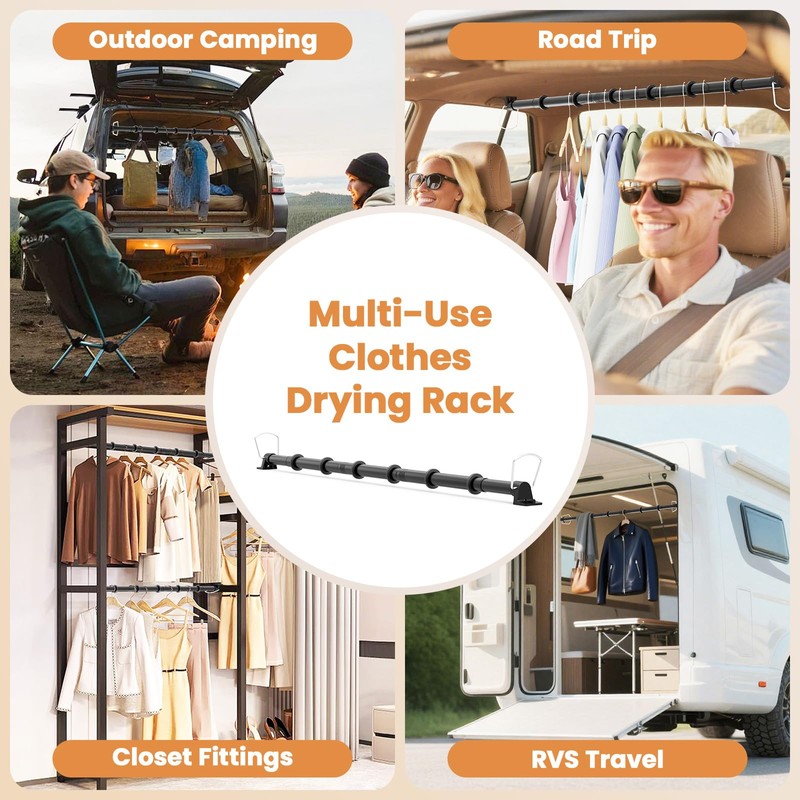 - ADJUSTABLE LENGTH FOR VERSATILITY: Easily telescopes from 30 to 63 inches to fit most vehicles, including cars, trucks, and SUVs. The three-section rod design makes this clothes rack for car an ideal solution for various car sizes. As versatile closet rods for hanging clothes, it simplifies storage and enhances organization on the go