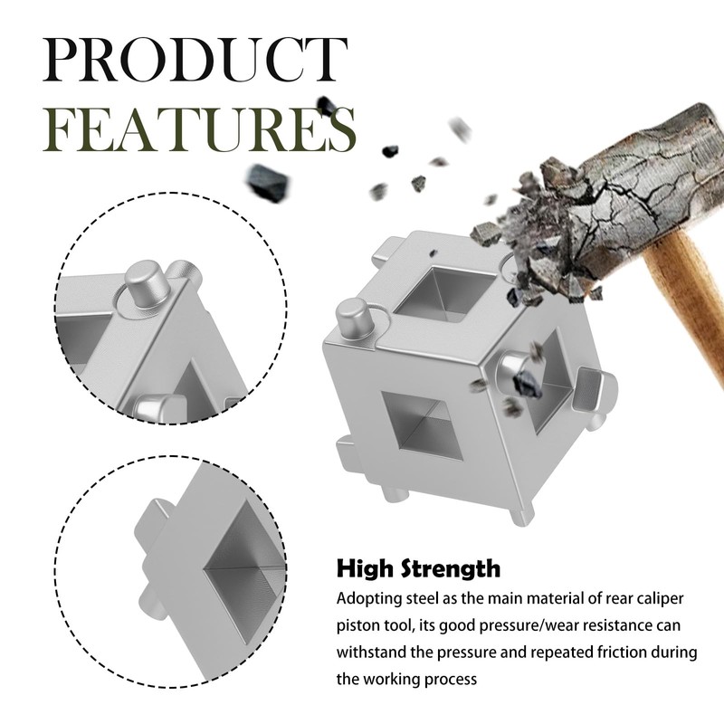 - Effortless to Use: No complicated use steps, select the appropriate side on the brake caliper piston rewind tool, align it with the piston, take out the 3/8 inch square head drive tool and insert it into the square port and rotate it to perform the piston press-back work