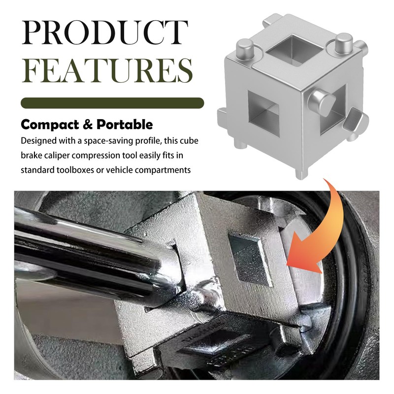 Car Cube Brake Caliper Compression Tool with 3/8" Square Drive Hole,6 Sides Brake Piston Tool for Adjusting Pistons,Steel Car Accessories Rear Brakes Caliper Tools for Disc Brakes