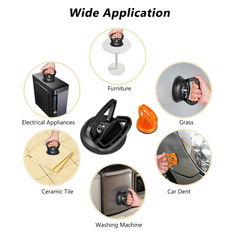 - 【 Widely Application 】- Auto dent puller kit is the ideal tool for moving flat objects in any home garage or professional body shop! It is not only a suction cup for dents on the car, but also can be used to carry heavy objects such as glass, mirrors, refrigerators or any smooth sheet-like objects,what a good helper for you!