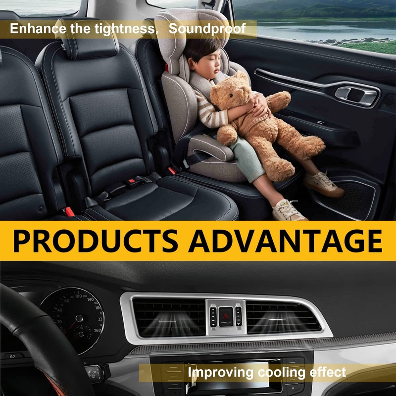 • 【Improved sealing performance】The door sealing strip has good elasticity, which can better fit your car gap and improve the sealing degree of your car. Reduce the noise when driving on the expressway, and make your journey and your family more comfortable and enjoyable. It can effectively save fuel consumption, fast cooling and reduce wear.