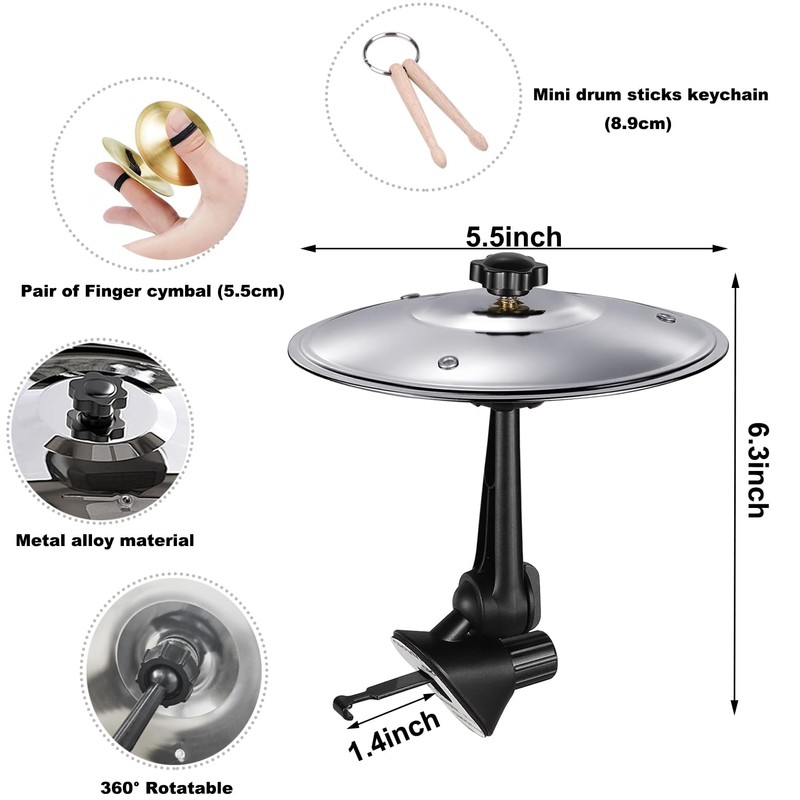 - Easy Installation and Stability: The universal bracket can be securely installed on car vents (horizontal/vertical) or dashboard within seconds. Adjustable cymbal arms lock the cymbal at the perfect angle - no swinging!