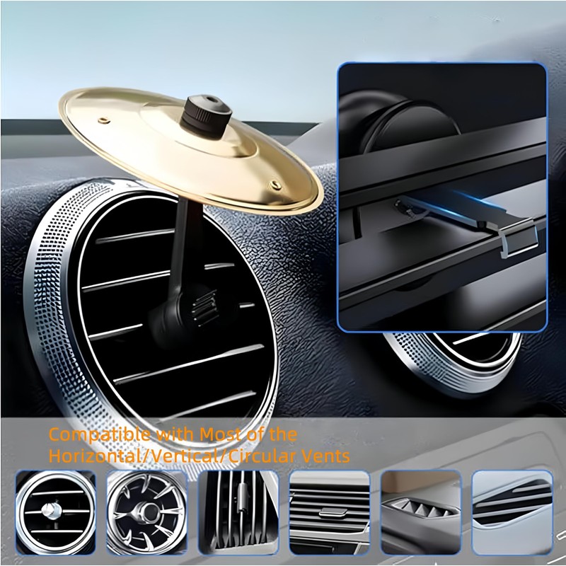 - Easy Installation and Stability: The universal bracket can be securely installed on car vents (horizontal/vertical) or dashboard within seconds. Adjustable cymbal arms lock the cymbal at the perfect angle - no swinging!
