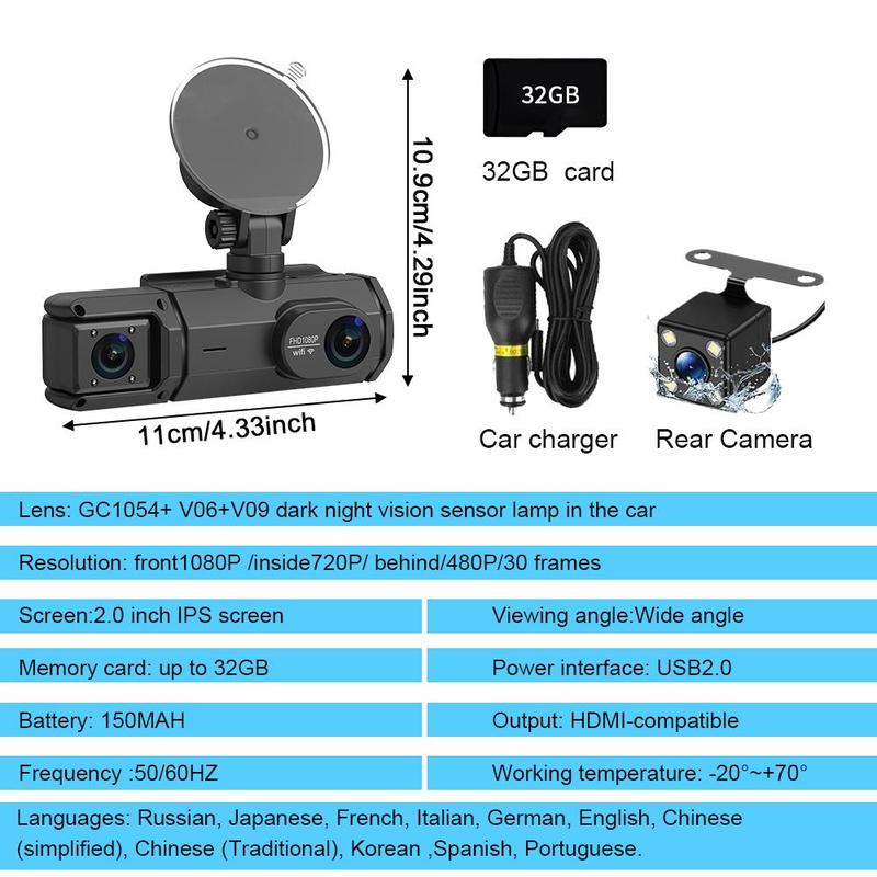 Car DVR, 1080P Car DVR with 32GB Memory Card & Rear Camera, WiFi Connection & APP Control Night -Vision Sensor Car DVR, Car Electronics Accessories, Dash Cam for Car, Car Accessories, Men Gifts