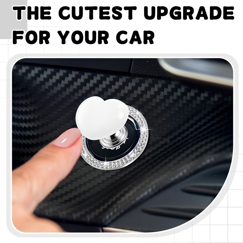 - COMPLETE SET: Package includes 1 crystal rhinestone engine start button cover, 4 decorative tire valve caps, and 1 bling engine start ring for a coordinated look