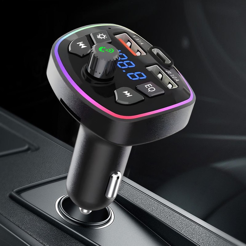 Enhance your car audio experience with our FM Transmitter. Enjoy lossless transmission and a stable connection with MCU+double-core processor. The colorful breathing atmosphere light adds a stylish touch. Perfect for multipurpose applications, this transmitter is a must-have for audio enthusiasts.