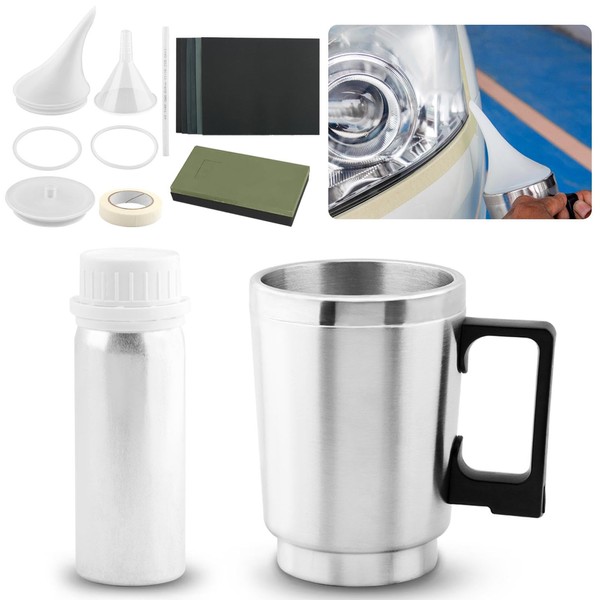 - 【EASY TO USE】First check the degree of damage to the car's headlights, choose the correct sandpaper for even polishing, and after completion, clean with water and dry the surface of the headlights. Pour the liquid into about one-third of the atomizer cup, heat it for about 5-10 minutes to produce steam, and fumigate the headlights. Unplug the power immediately after completion.