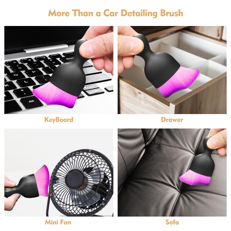 Car Interior Cleaning Brush Car Duster Interior with Ultra Soft Bristles Auto Detailing Brushes Dusting Car Accessories for Dashboard, AC Vents, Leather, Scratch-Free (Double Purple)