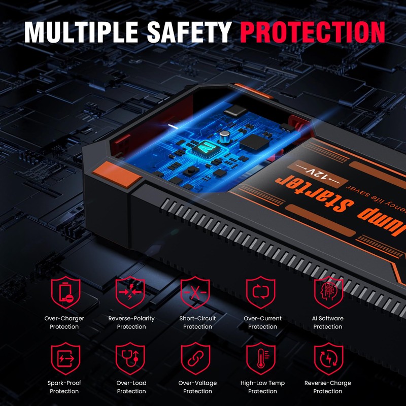 • 【Smart IC and Ultra Safe Design】More performs in safety efficiency and compatibility etc with Advanced intelligent controlling IC 100% checked and continuous aging test which it will brings you unprecedented convenience. Upgraded Built-in 10 multi-protection system and premium microchips to ensure your safety to the maximum. Trustworthy Car Battery Jump Starter with 3 Years Warranty!