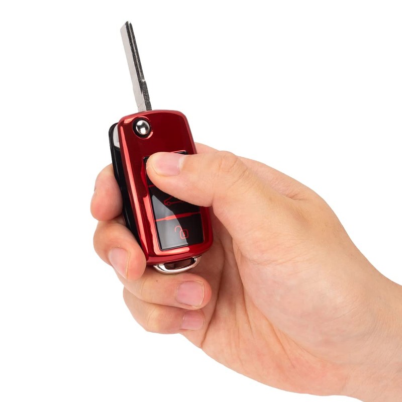 Car Key Case for VW Golf Skoda Seat Key Cover 3-Button TPU Car Key Cover (Red)