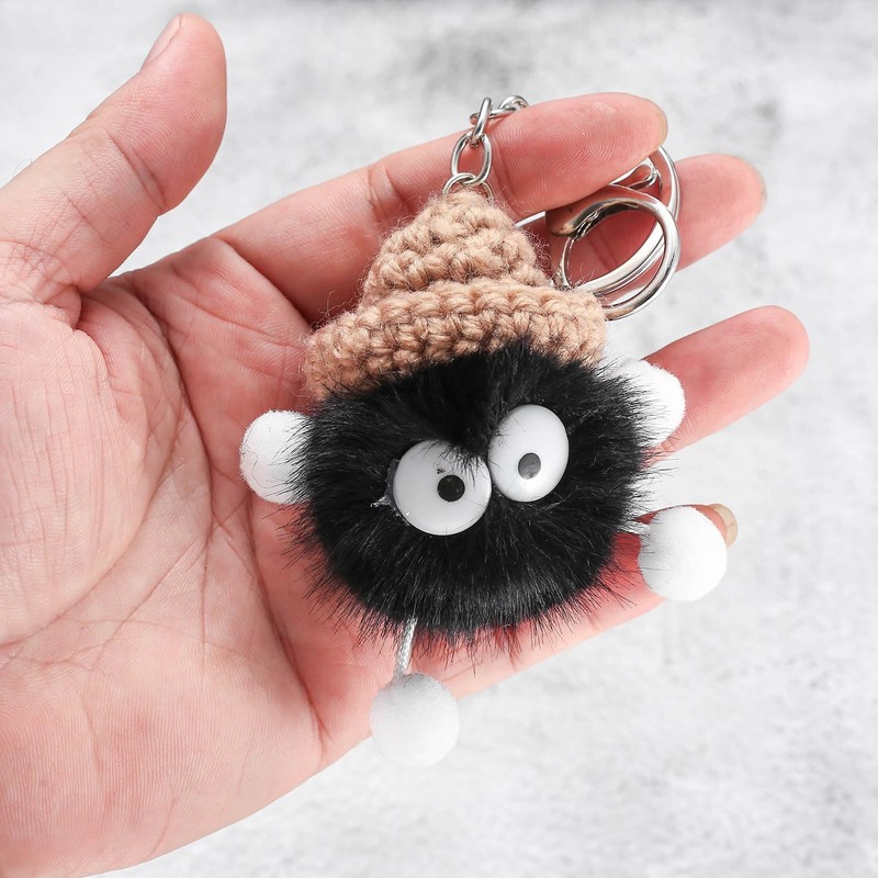 The cute key ring is designed with cute cartoon shapes. The furry cartoon animals wear knitted hats and look very cute.