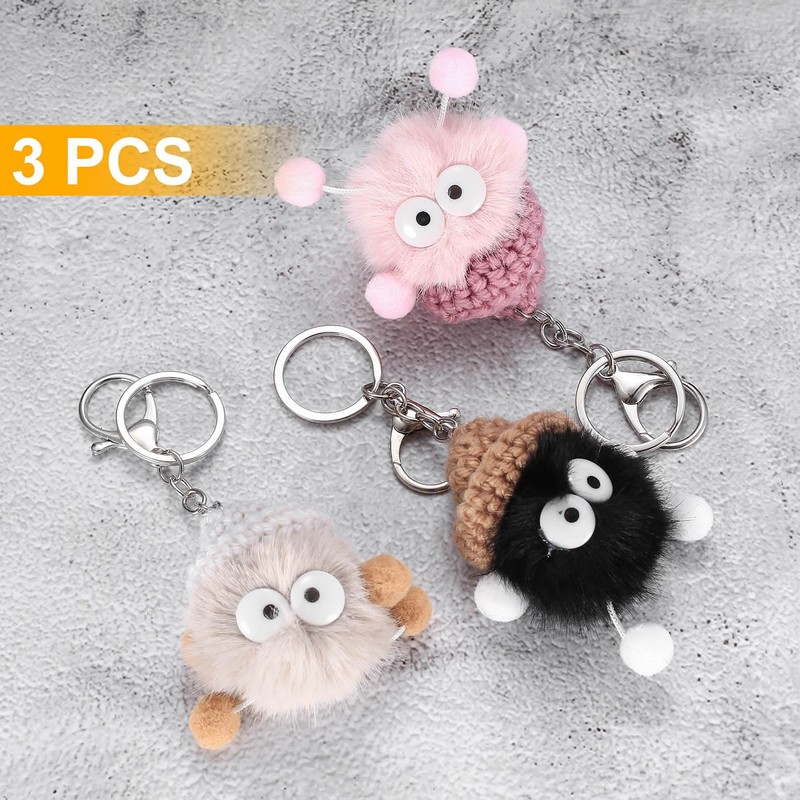 - The package includes: you will receive 3 pieces key rings pompom, 3 colours: black, khaki, pink, moderately heavy, lightweight and chic, can easily brighten up your life and make you fun. Can be used not only as a keychain, but also as office and home decoration.