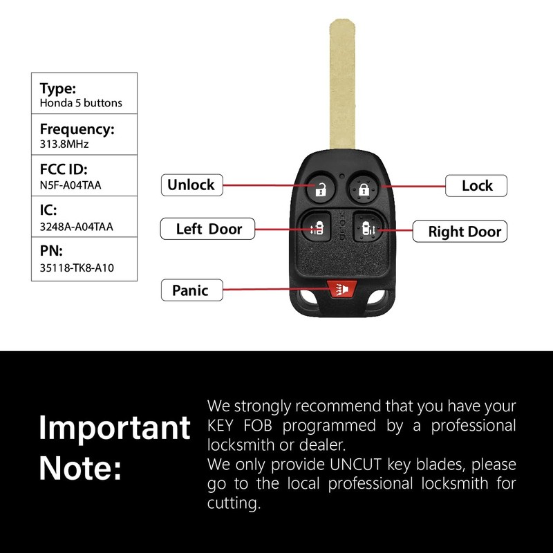 Car Key Fob Remote Keyless Entry Control N5F-A04TAA 313.8MHz 5 Button Replacement for 2011-2013 Honda Odyssey - 2 Pack