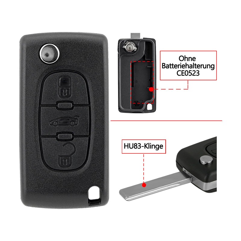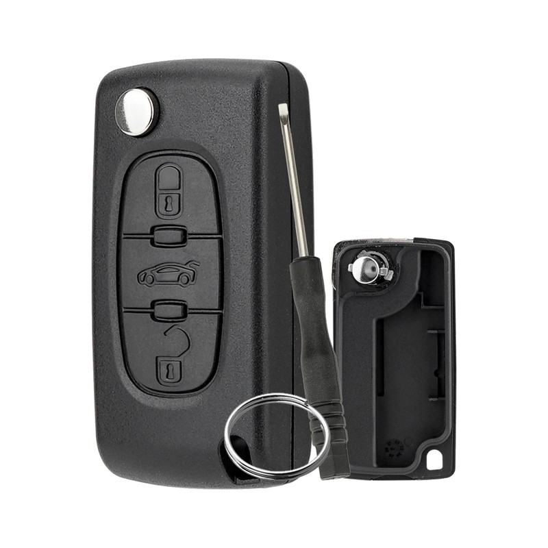 Car Key Shell Replacement 3 Buttons for Peugeot Citroen Flip Key Shell with Screwdriver and Key Ring HU83 Blades CE0523