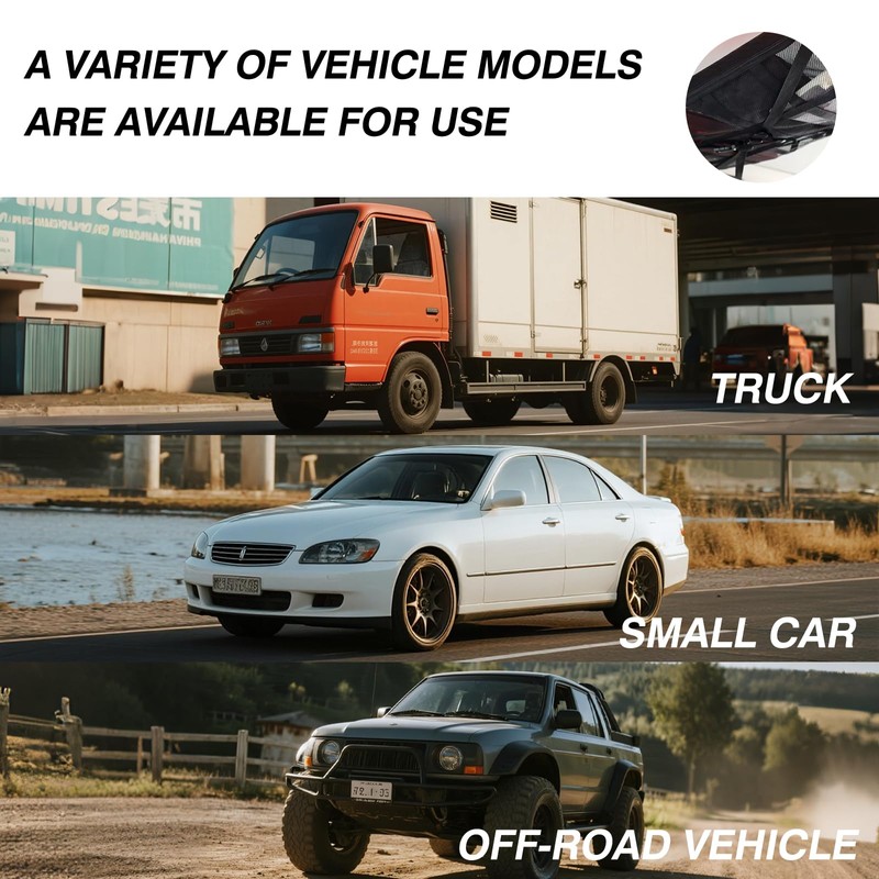 4. The car roof tent is suitable for all vehicle types, e.g. Saloons, jeeps, vans, SUVs etc., and can also be used as a mesh bag in the boot.